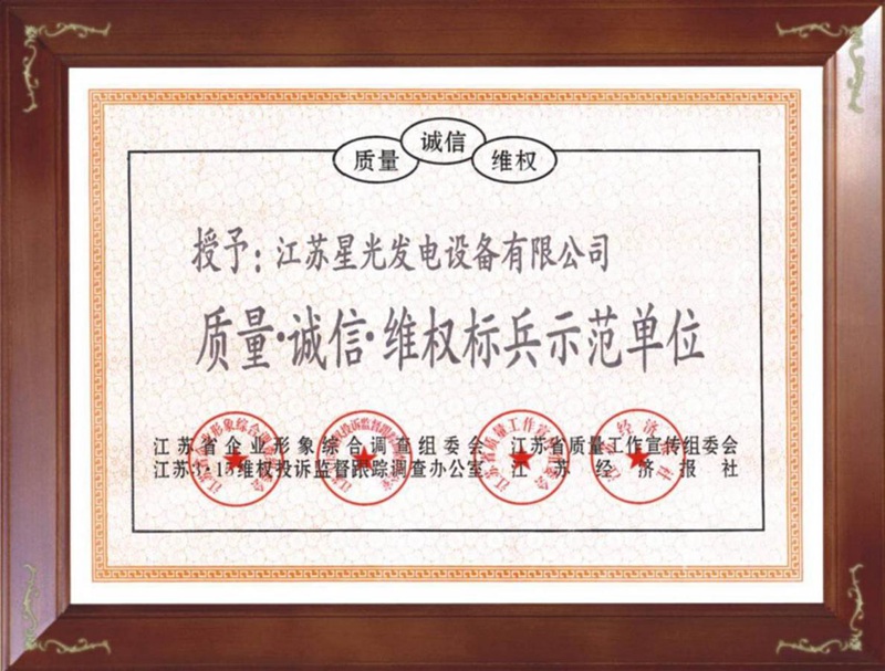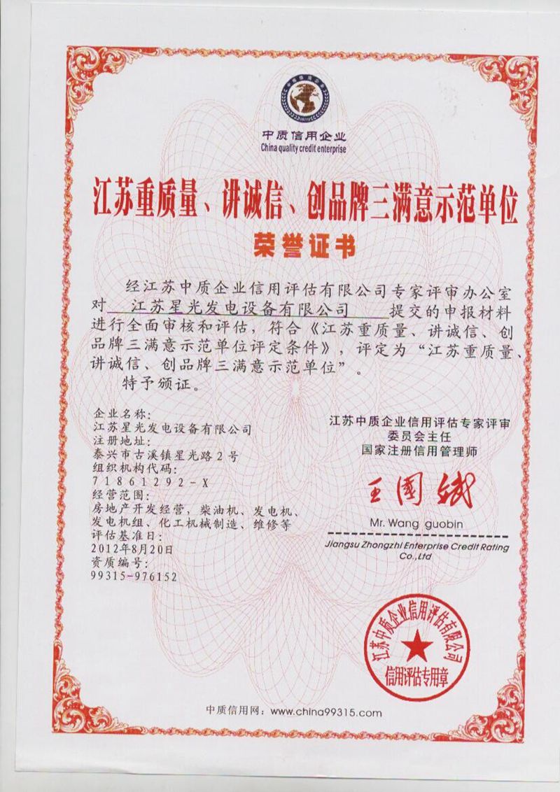 江蘇重質(zhì)量、講誠信、創(chuàng)品牌三滿意示范單位榮譽
