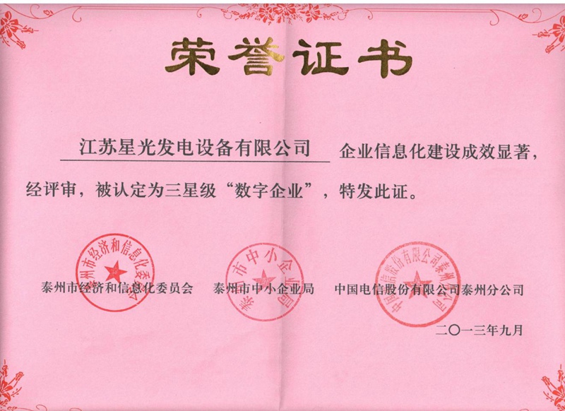 三星級“數(shù)字企業(yè)”榮譽證書、泰州市誠信單位榮