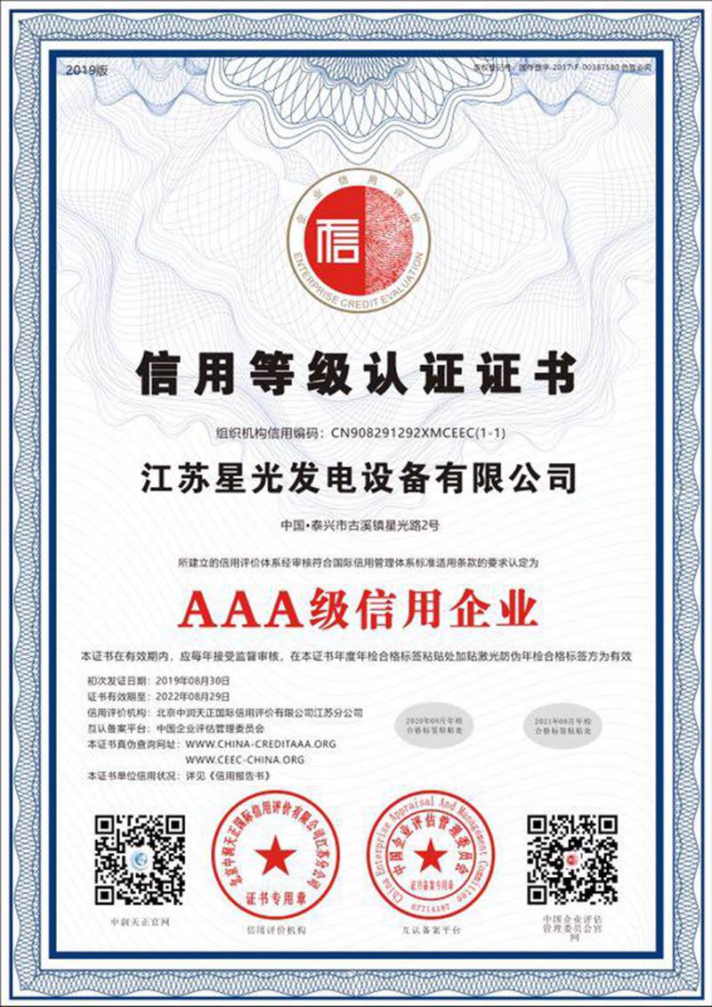 AAA級(jí)信用等級(jí)認(rèn)證證書(shū)